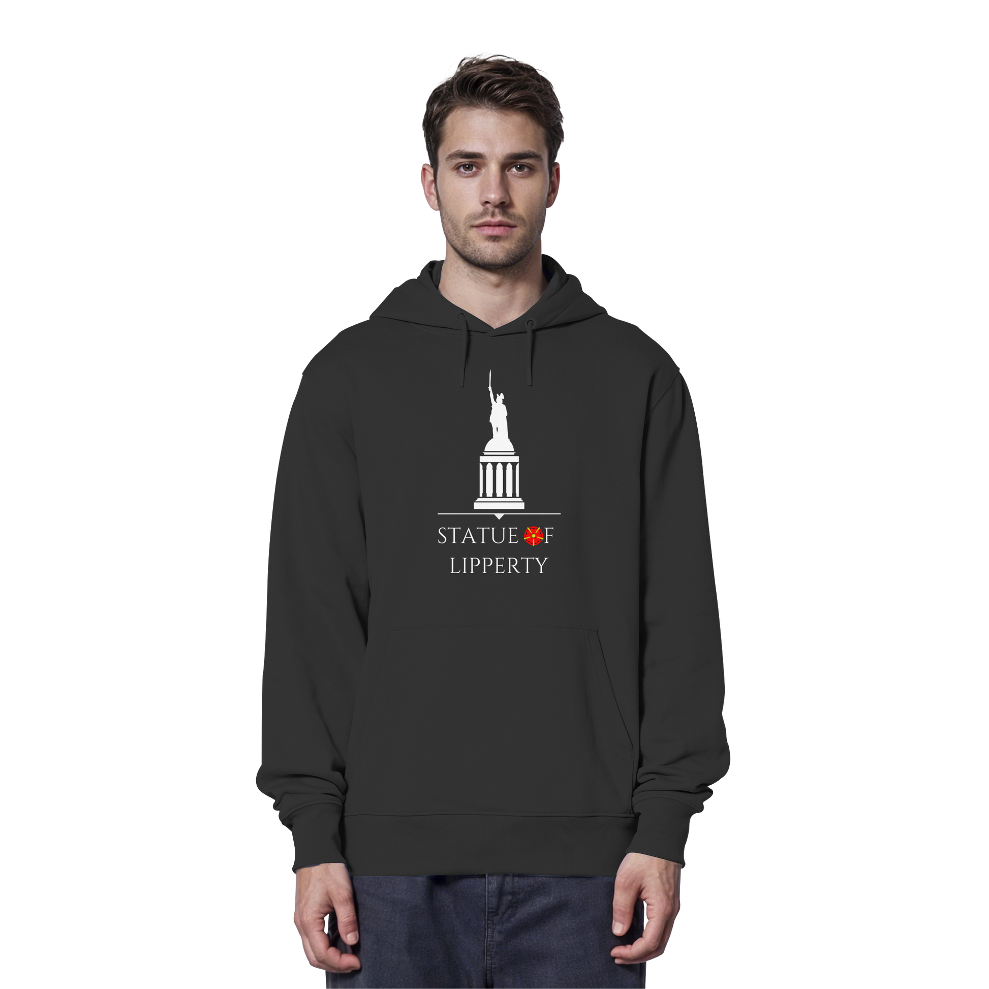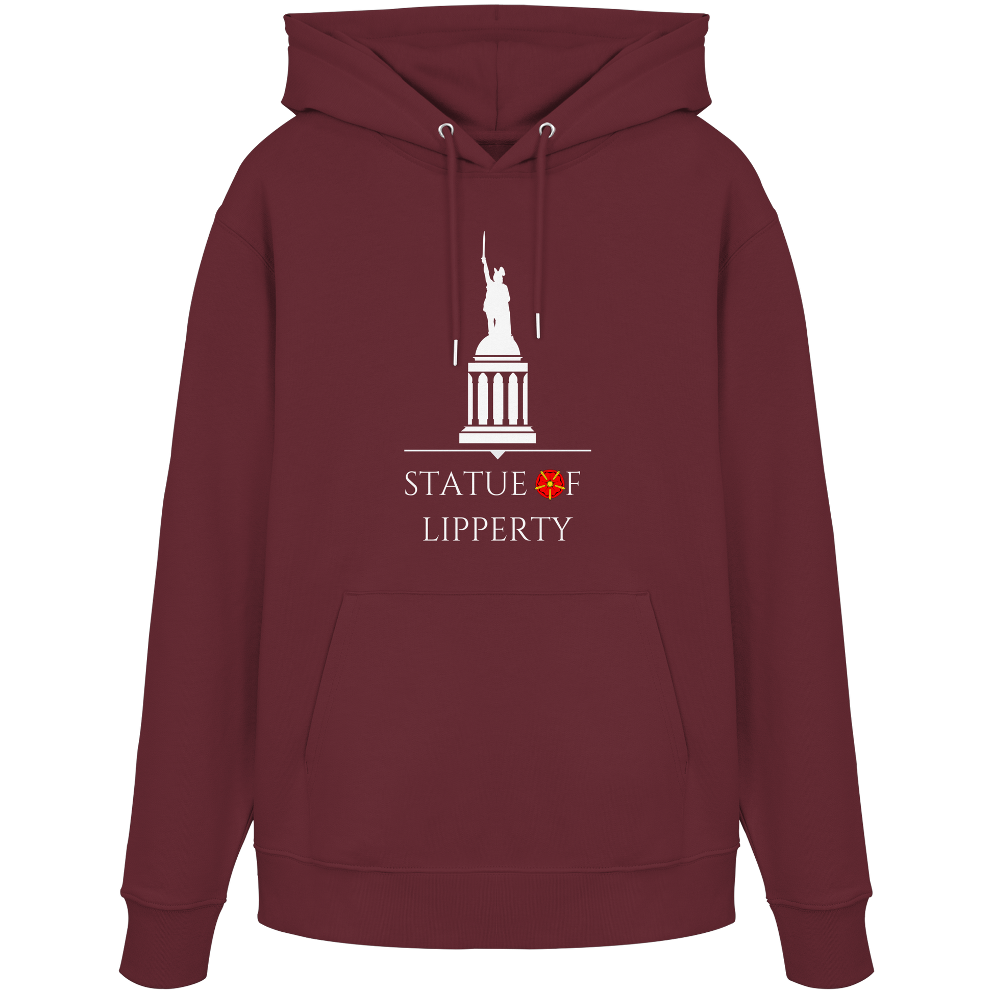 Dieses Motiv ist schon fast Kult! Zeig deine Liebe zu Lippe mit dem einzigartigen "Statue of Lipperty"-Motiv. Das Hermannsdenkmal lässt Lady Liberty blass aussehen und die lippische Rose macht dieses Design zu einem echten Hingucker. Hier bekommst du das Original – in bester Bio-Qualität und fair produziert.